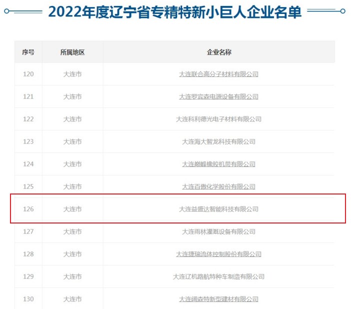 近日,大連益盛達(dá)智能科技有限公司憑借出色的綜合實(shí)力,榮獲2022年遼寧省專精特新“小巨人”企業(yè)稱號(hào)。